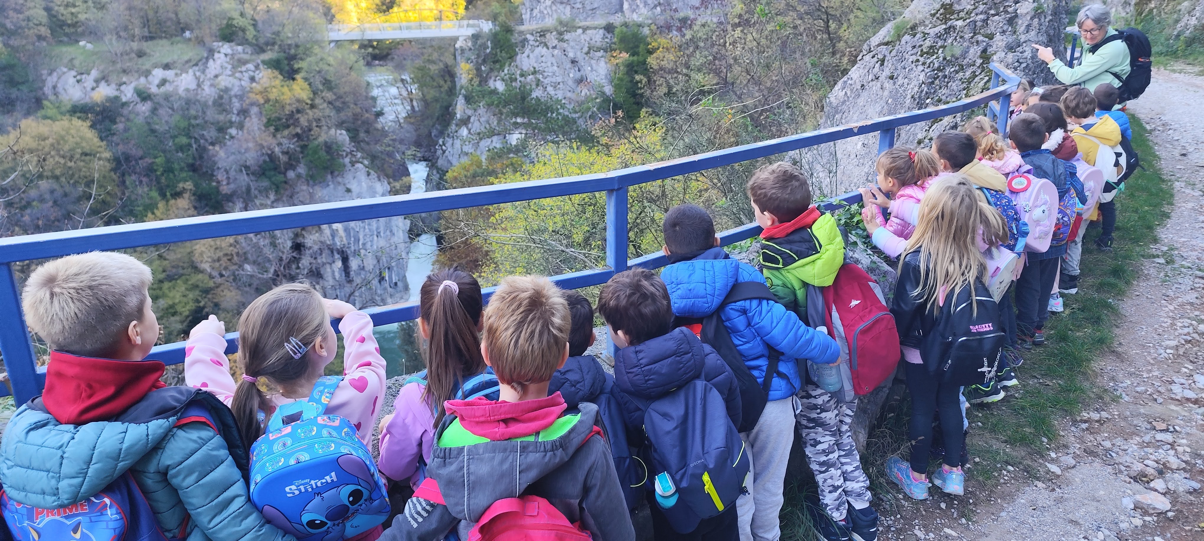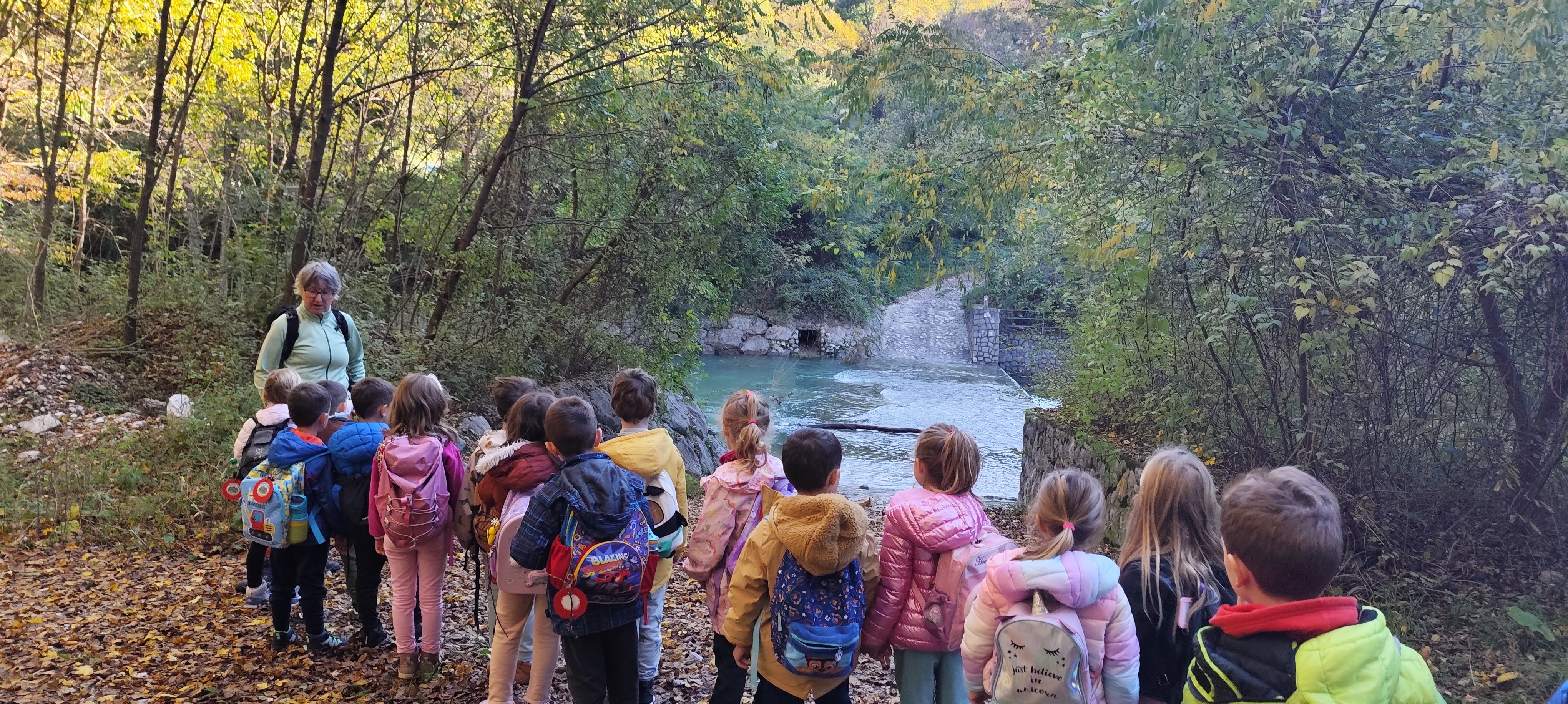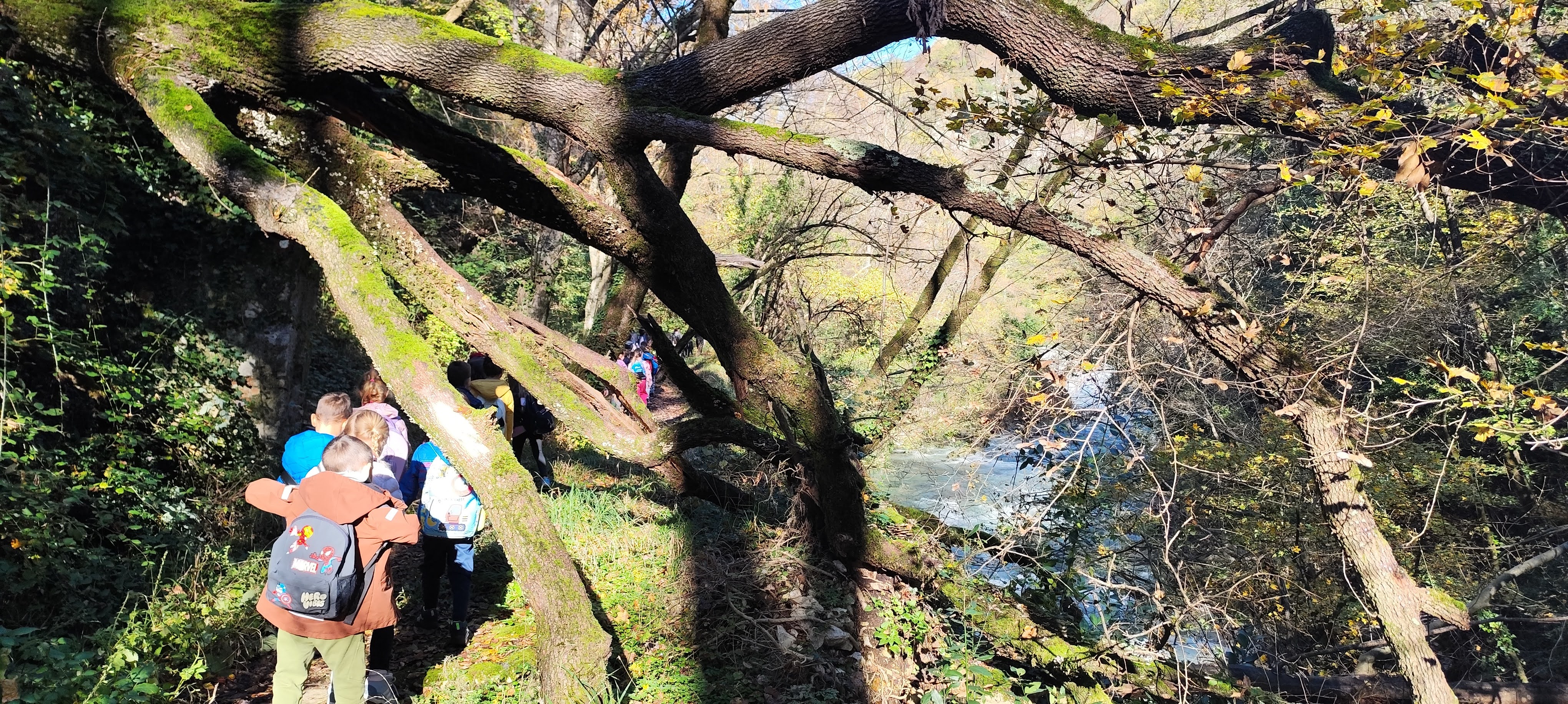 Na našem drugom izletu priključila nam se i grupica iz podcentra Pčelice te smo se u velikom broju spustili u kanjon Rječine, naš skriveni, divlji dragulj. Mnogi su po prvi put prešli preko novog pješačkog mosta s kojeg se pruža prekrasan pogled na kanjon, trsatsku gradinu, Deltu i Školjić. Ruševine starog mlina Žakalj pobudile su maštu, a mašta je dodatno oživjela i obogatila taj prekrasan jesenji dan. Rječina nas je počastila ovaj put ne samo žuborom, već i zaglušujućom hukom zbog čega smo se morali istim putom vratiti do autobusa koji nas je odveo na zasluženi ručak u naše vrtiće.